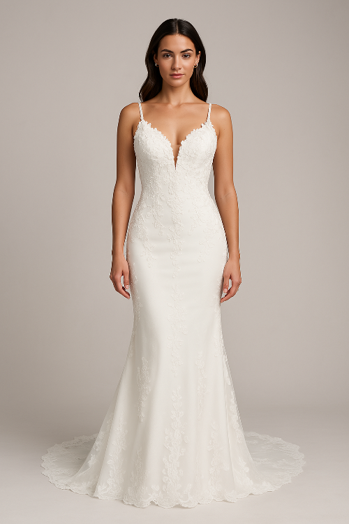Indulge in luxury and elegance with our Mermaid Lace Thalassa Wedding Dress. We recommend you size up and have it tailored so it fits perfectly.